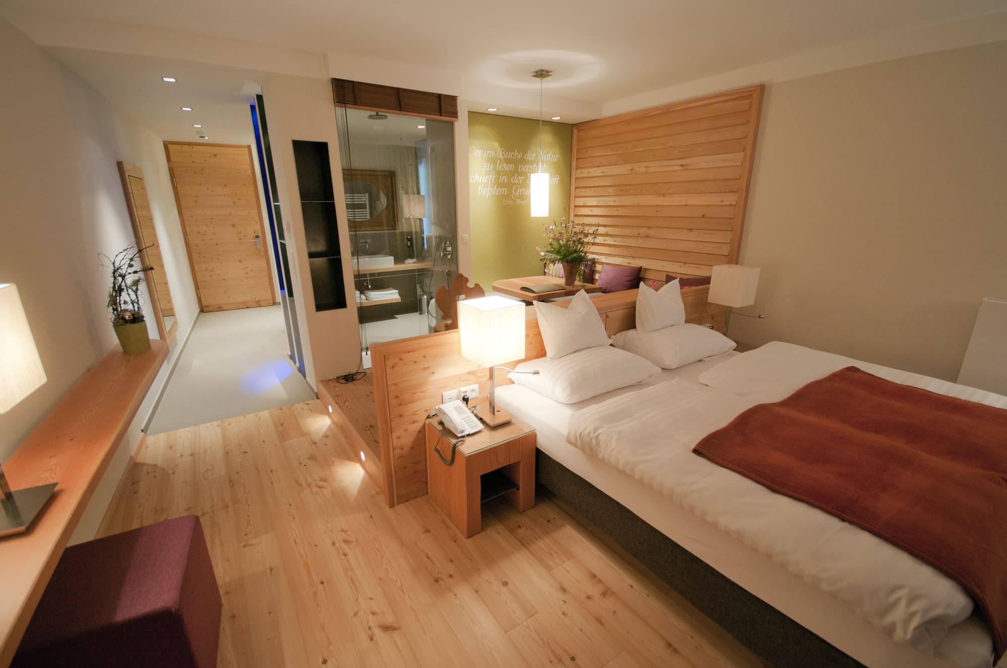Die Natur hat ihren ureigenen Herzschlag. Er pocht im Rhythmus der Jahreszeiten oder zeigt sich im Rauschen des Windes. Im Bio-Wellness-Hotel Holzleiten ist dieser Herzschlag ständig spürbar. Das Viersternehaus ist die architektonisch realisierte Liebeserklärung an das edelste Nadelgehölz der Alpen – die Lärche, die hier am Mieminger Plateau, dem größten Lärchenschutzgebiet Europas, in weitläufigen Wäldern ihre Heimat gefunden hat. Die kraftvolle Energie dieses Baumes, dessen Harz seit Jahrhunderten als Heilmittel verwendet wird, findet ihre geniale Entsprechung in unzähligen gestalterischen Elementen und Details im Inneren des Hauses – von der Lobby über das Alpenlarch Spa und die Fitnessräume bis hin zu den 41 Zimmern und Suiten mit Balkon und Gipfelblick.