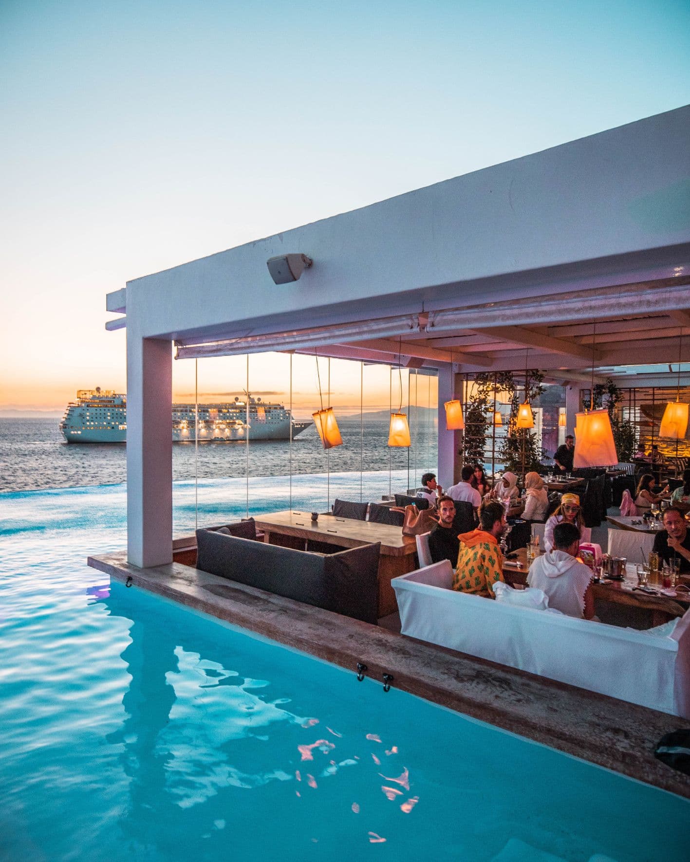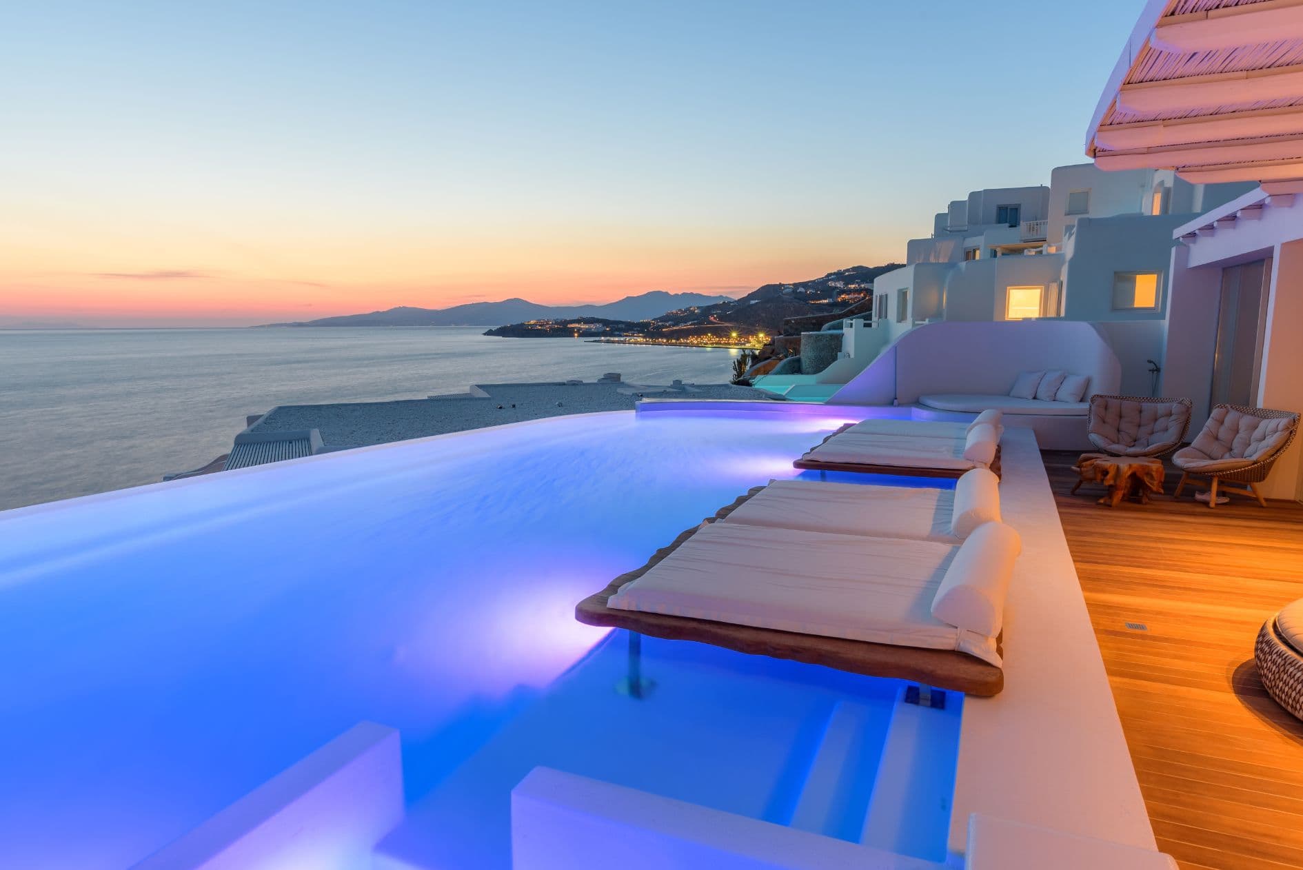 Ein Pool der um die Welt gingKaum ein Hotel kann von sich behaupten, einen Pool zu besitzen, der weltweit erkannt wird. Der Infinitypool des Cavo Tagoo ist einer der meist fotografierten Griechenlands, zu sehen in Magazinen, Reiseführern und Millionen von Instagram-Feeds. Hoch über der Ägäis gelegen, steht er im Mittelpunkt, wenn die untergehende Sonne das türkisfarbene Wasser in goldenes Licht taucht. Stars aus Hollywood, internationale Trendsetter und stilbewusste Reisende erleben hier Tag für Tag unvergesslicher Augenblicke.