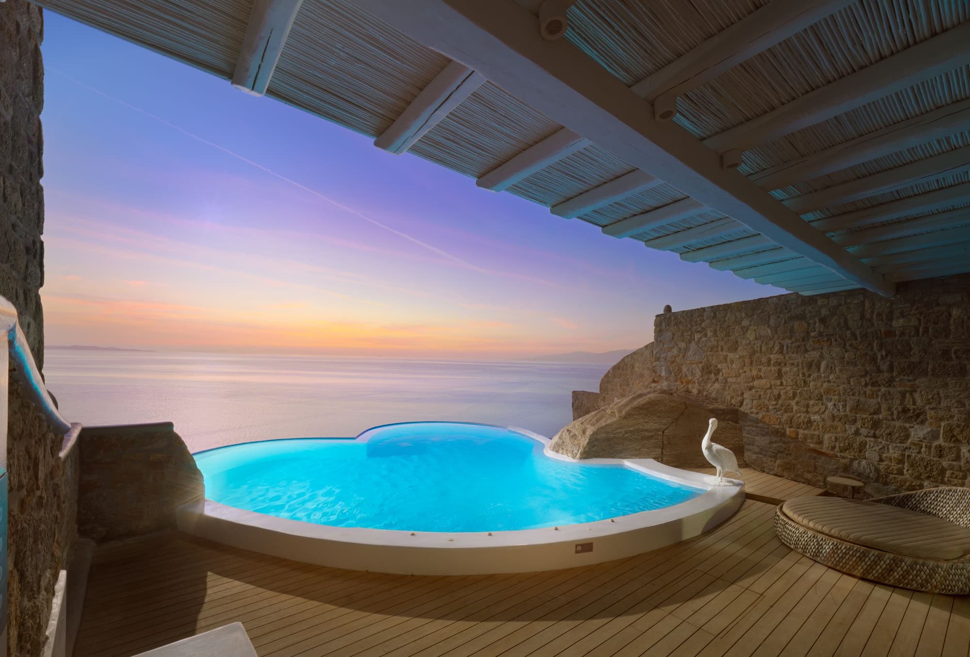 Unter den begehrtesten Unterkünften Griechenlands rangieren die ikonischen „Cave Pool Suiten“ des Cavo Tagoo ganz oben. In den Felsen gebaut, vereinen sie organische Architektur mit absoluter Privatsphäre – ein Rückzugsort, der ebenso fotogen wie unvergesslich ist. Eine der exklusivsten Suiten entstand in Zusammenarbeit mit dem französischen Künstler Richard Orlinski und verbindet zeitgenössische Kunst mit höchstem Hoteldesign.