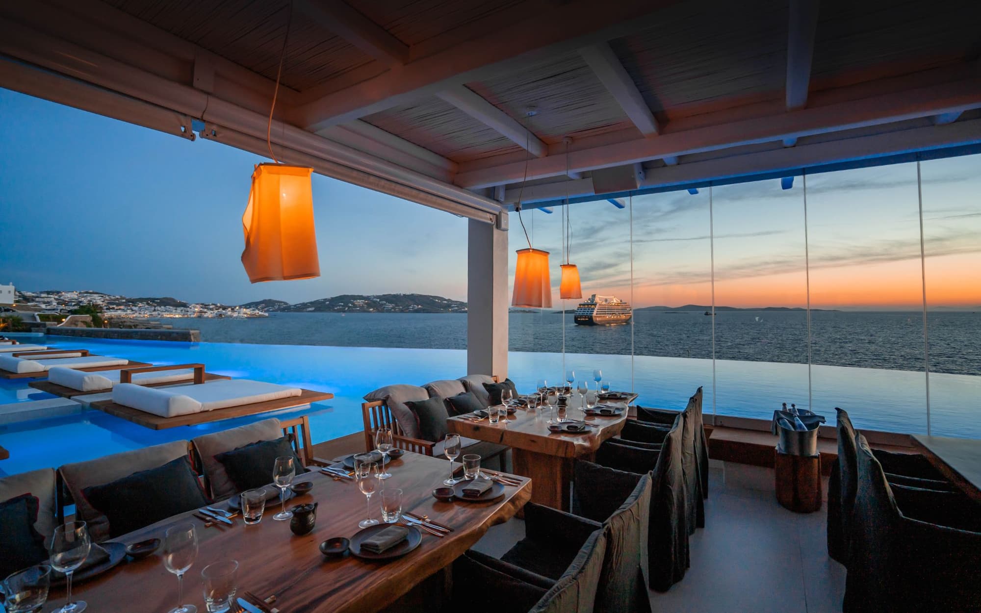 Cavo Tagoo steht nicht nur für stilvolle Unterkünfte, sondern auch für exzellente Küche. Mit dem „Zuma Mykonos“ verwöhnt ein weltweit renommiertes japanisches Restaurant seine Gäste und ist längst zu einem gesellschaftlichen Treffpunkt der Insel geworden. Daneben serviert „Meraki Mykonos“ griechisch-mediterrane Aromen in herrlichem Ambiente mit Panoramablick. Zwei kulinarische Destination von Weltformat.
